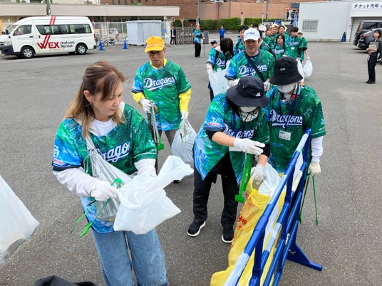想像以上に多くのゴミが集まりましたが、参加者一人ひとりの努力によって、公園や球場周辺の環境が見違えるほどきれいになりました。参加者からは「OBと一緒に活動できる機会はめったにないので、非常に貴重な経験だった」「OBのファンなので夢のような時間だった。今後もこのような社会貢献活動に積極的に参加していきたい」「球場の周辺をキレイにするのは大事だと思うし、今度はバンテリンドームの周辺でもやってみたい」とのコメントが寄せられ、OBとの交流を楽しみつつも、環境への意識を高めました。