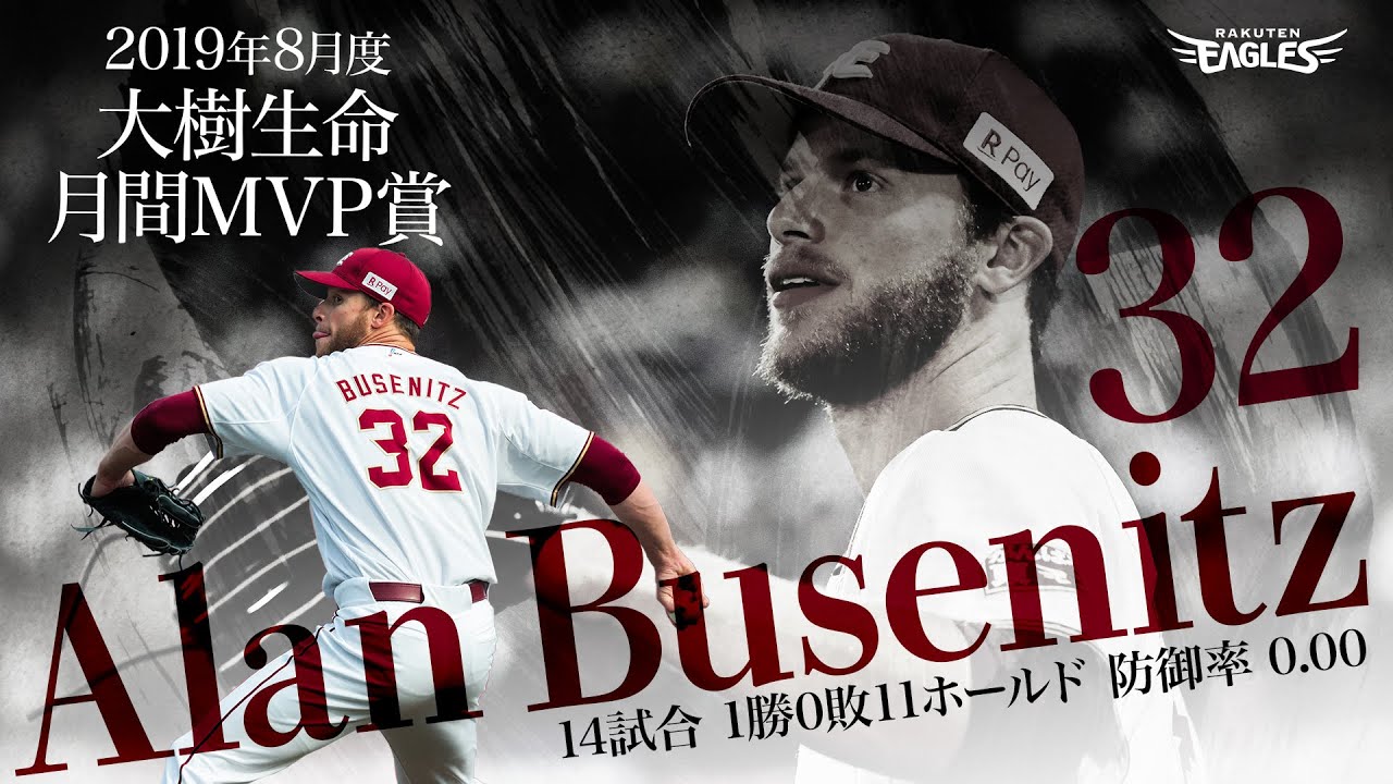 本日9月11日(水)、8月度の「大樹生命月間MVP賞」が発表され、パ・リーグ投手部門でアラン・ブセニッツ選手が受賞いたしました。