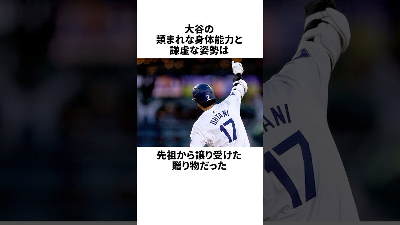 先祖からとんでもない地を受け継いだ大谷 翔平は今ではメジャーリーガーも絶体が 大きくなり、あまりにも常人離れした パワーを手に入れたことで人間じゃないの ではという噂も流れたが、ここまで成長 できたのは母親の血筋の影響が大きかった ようで、母のか子さんによると祖父の身長 は昭和初期生まれとしてはかなり大柄な 175cm。しかも運動能力は天生のもの を持っており、野球部だった中学時代には 二刀流で無双していただけでなく代理で 出場した陸場大会の走り幅飛びで大会新 記録を叩き出した。さらに自慢をすること は恥という事論を持つ祖父は孫がプロ野球 選手になっても近所の人に自分から話す ことはなかったという。世界一の選手に なっても奢ることなくとレー任務を続け 自分自身と戦い続ける姿は間違いなく祖父 から受け継いだもの。大谷の類い稀れな 身体能力と謙虚な姿勢は先祖から譲り受け た贈り物だっ