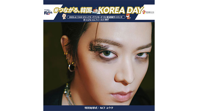 6月1日(日)の対埼玉西武ライオンズは「韓国観光公社」がスポンサーとなり「#つながる、韓国 KOREA DAY」として開催いたします。特別始球式には韓国を基盤に世界で活躍するNCT ユウタさんにご登場いただきます。