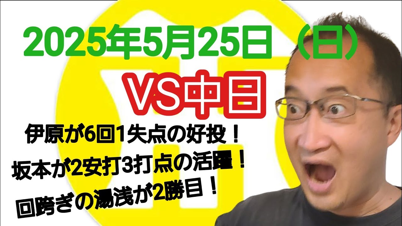 【阪神タイガースについて語る動画】2025年5月25日(日) ● 中日 1 × 5 阪神 ○ 伊原が6回1失点の好投! 坂本が2安打3打点の活躍! 回跨ぎの湯浅が2勝目!