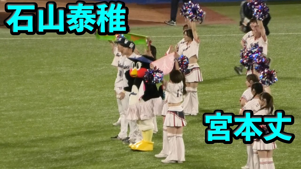 スワローズ勝利!石山泰稚&宮本丈、外野スタンドに挨拶に来る