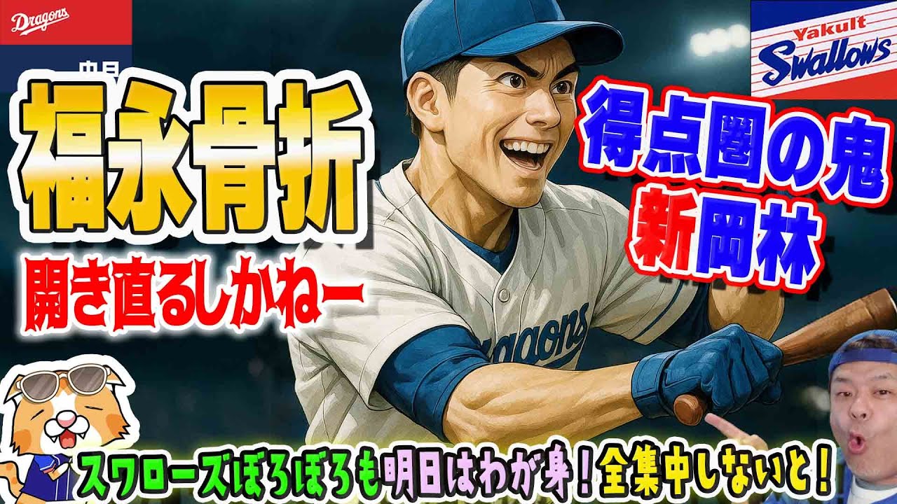 【中日ドラゴンズ】福永骨折・・・ここはもう開き直るしかねー!!三浦好投初安打!新3番岡林タイムリー!スワローズ拙守はお互い厳しいっすな・・・【ライブ】