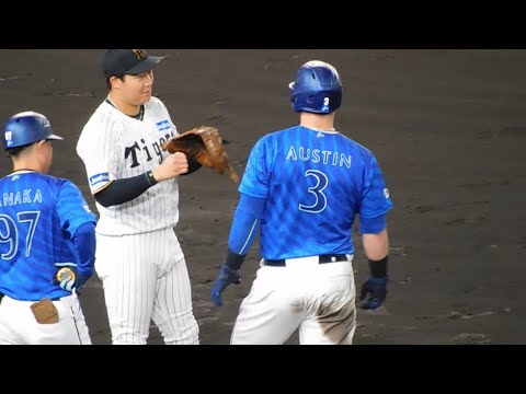 【昨日とは反対の立場】リクエスト待ちのオースティンと和やかに会話をする大山悠輔