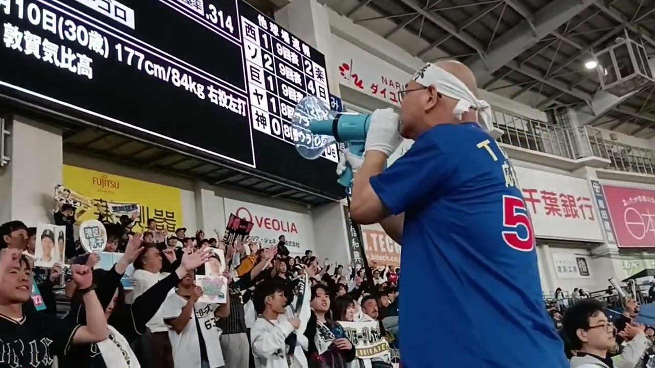 9回先頭打者がツーベース。チャンスで登場する廣岡大志の応援団リードする人間国宝・50番先生 応援東京応援団 2025.5.27 ZOZOマリン オリックスvsロッテ8回戦