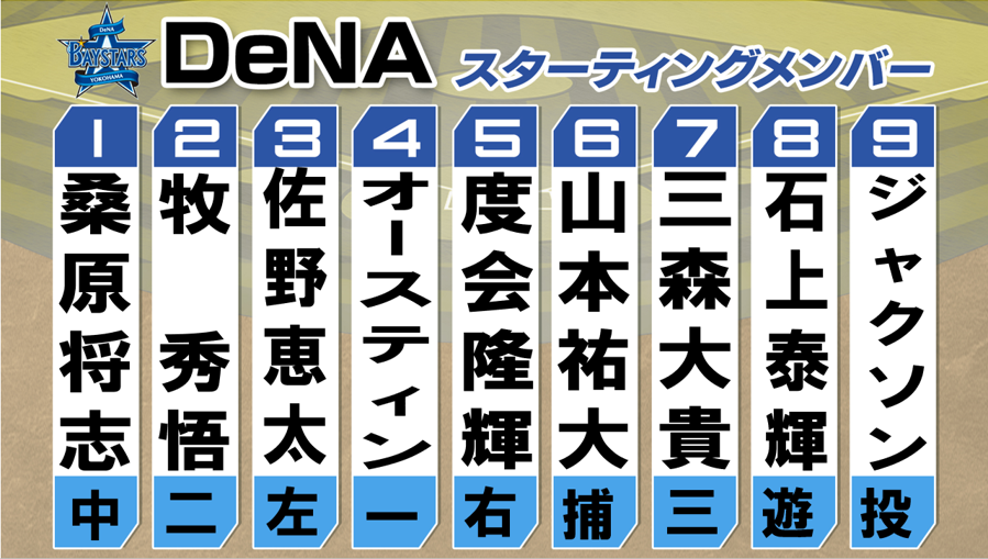 【DeNAスタメン】1番と2番に好調の桑原&牧 先発ジャクソンは防御率はリーグ3位|日テレNEWS NNN 日テレNEWS NNNスタメン発表 阪神はドクターK、デュプランティエが先発 18打席無安打の森下翔太は復活の一打出せるか(サンケイスポーツ) Yahoo!ニュースヤクルト・小川泰弘、29日先発!同期・石山の偉業から刺激「僕も一試合一試合頑張っていきたい」 サンスポ29日の予告先発 南日本新聞【DeNA】スタメン3人入れ替え 度会、三森、石上先発 33イニング連続無得点の得点力不足打破へ dメニューニュース