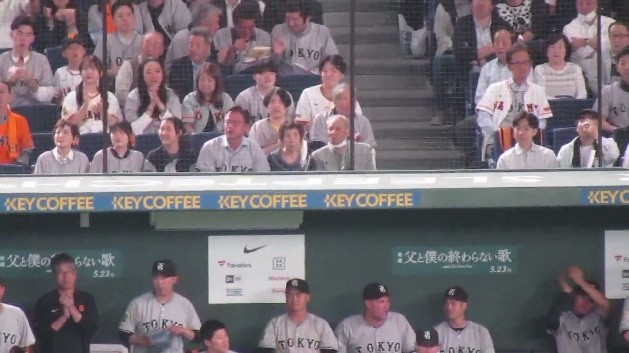 甲斐拓也のヒットに喜ぶ岸田行倫や増田陸など【読売ジャイアンツ対 ヤクルトスワローズ2025年5月23日】