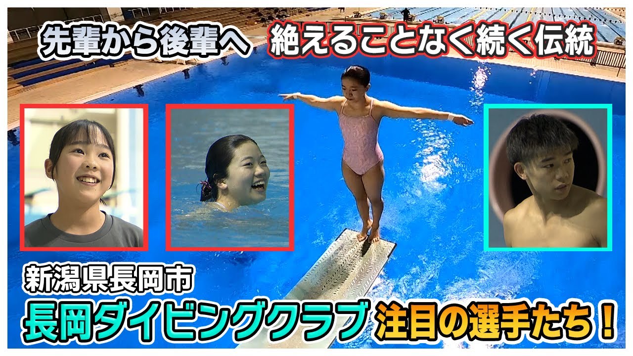 全国でも珍しい飛び込み専門の クラブ長岡ダイビングクラブ [音楽] 。今年総武63年目を迎え、現在幼稚園寺 から社会人まで18人の選手が技の習得に 励んでいます。 [音楽] 高校世代の代表格は高校3 年の石沢カト選手。去年の国民スポーツ大会ではパリオリンピックの銀メダリスト玉井陸ト選手に継ぐ準優勝と目覚ましい活躍を遂げました。 [音楽] 体付けからまずあ、もう違うなっていうの がありましたし、あとは もうなんて言うんですかね、もうレベル、 もう技術の差だったりメンタルの差だっ たり、やっぱ同年代っていうところで ものすごく刺撃受けますみたいな 。去年11月には世界ジュニア選手権に 出場し、世界デビューを果たしたカト選手 。この春大学進学を控え、今年3月高校 最後の全国大会となる翼 ジャパンダイビングカップに出場予定 。7月の世界の代表先でもあるこの大会で 再び日本代表入りを目指します 。 近い目標は、ま、目も作りつばジャパンで日本代表に選ばれることで世界で戦うため得意の板飛び込み種目に照準を絞ったカト選手。この日は世界でも通用する大技に初めて挑戦しました。 [拍手] [音楽] 後ろ中帰り3 [音楽] 回半抱え型使っているのは国内で1 人のみという難易度の極めて高い技です。 思ってたよりもできたなっていう感じです かね。新技に挑戦するっていう機会が今 なくて、その中でこう今日できたのは すごく自分の中で大きいものかなって思い ます 。 [音楽] 起動する父の高幸さんはこの1 年間で心身共に成長を遂げたカト選手の世界での活躍に期待を込めます。 歴としては、ま、3 [音楽] 割ぐらいですけど、あの十分試合で使えるんじゃないかなっていう手応えを感じたあの練習でした。高校生の段階でそこに手をつけられてるというのは 1つ明るい材料かなと思いますよ。 世界での日本代表入り、その先のオリンピック出場と夢は大きく広がります。 [拍手] [音楽] ま、大きな目標としては大学4 年生のオリンピック、スマその4 年後のオリンピックとオリンピックに出れるように頑張りたいす。 [拍手] [音楽] 中学世代のエースは中学3 年生の加藤オナ選手へ。女子選手の中では最年長。目標だった全国大会でも準優勝に輝きました。 高校生に混ざって参加した国民スポーツ 大会では最年勝ながら堂々の6位入勝 。今年の国際大会デビューに向けて成長を 続けています 。今はクラブの仲間と楽しみながら練習し てるのですごい自信を持って楽しく練習 できてます 。 [音楽] この日は加藤選手も初めての大業技に挑戦。後ろ中帰り 1回半。1回半日ねり自由型。 [音楽] 高さに対する恐怖感からなかなか足が前に進みません。間違って。 頑張れ。できる。 [音楽] [拍手] 胃を消して踏切り台へ。 [拍手] [音楽] 待って動くよ。1 おい。おいたいた。できた。できた。 [拍手] [音楽] [拍手] タロいです。太郎いです。 高くてすごい足が震えながら飛んだんですけどすごい表頼りできて嬉しかったです。 [音楽] 指導する荒木コチも加藤選手の順調な成長に目をめます。 [音楽] 今日あと1本 想像していたより上手に飛ぶことができまして、もう今すぐにでも大会で使えるような完成度だったので、正直コーチとしても驚いてはいるんですけれども、もっともっと時間かけて練習していけば必ず強い武器として、え、使える技になるのかなと感じました。 この春高校受験を控えている加藤選手 飛び込みと受験勉強との両立を目指します。 あの練習に来るとすごい楽しくてなんだろうリフレッシュできるので練習も来て勉強も頑張りつ分領土に頑張っていきたいです。 [音楽] [音楽] 小学生でも水星のごとく現れた逸材がいます。立川ゆ井選手 4年生。 去年夏の全国大会は4 [音楽] 年生ながら準優勝を成し遂げました。競技歴なんと 1 年半での全国2位はクラブ市場初の開。 憧れの先輩の背中を追って春の全国大会に向けて表彰台を目指します。目標にしてる選手ますか? [音楽] リオナさんです。加藤オナ選手みたいな選手になりたいです。ここ直したから綺麗にできるよとか優しく教えてくれたりします。 [音楽] 先輩から後輩へ、 総武から62年。1 度も選手が耐えることなく続いてきた伝統はこの先も受け継がれていきます。 上の世代は下の世代にしっかりと教えながら指導者だけじゃなく選手同士で、え、指導のやり取りもする場面も多く見られますし、年齢の上下の関係がずっとどの場面でも存在しているところが本当にこのチームの強みなんじゃないかなと思っています。 [音楽] シ [音楽]