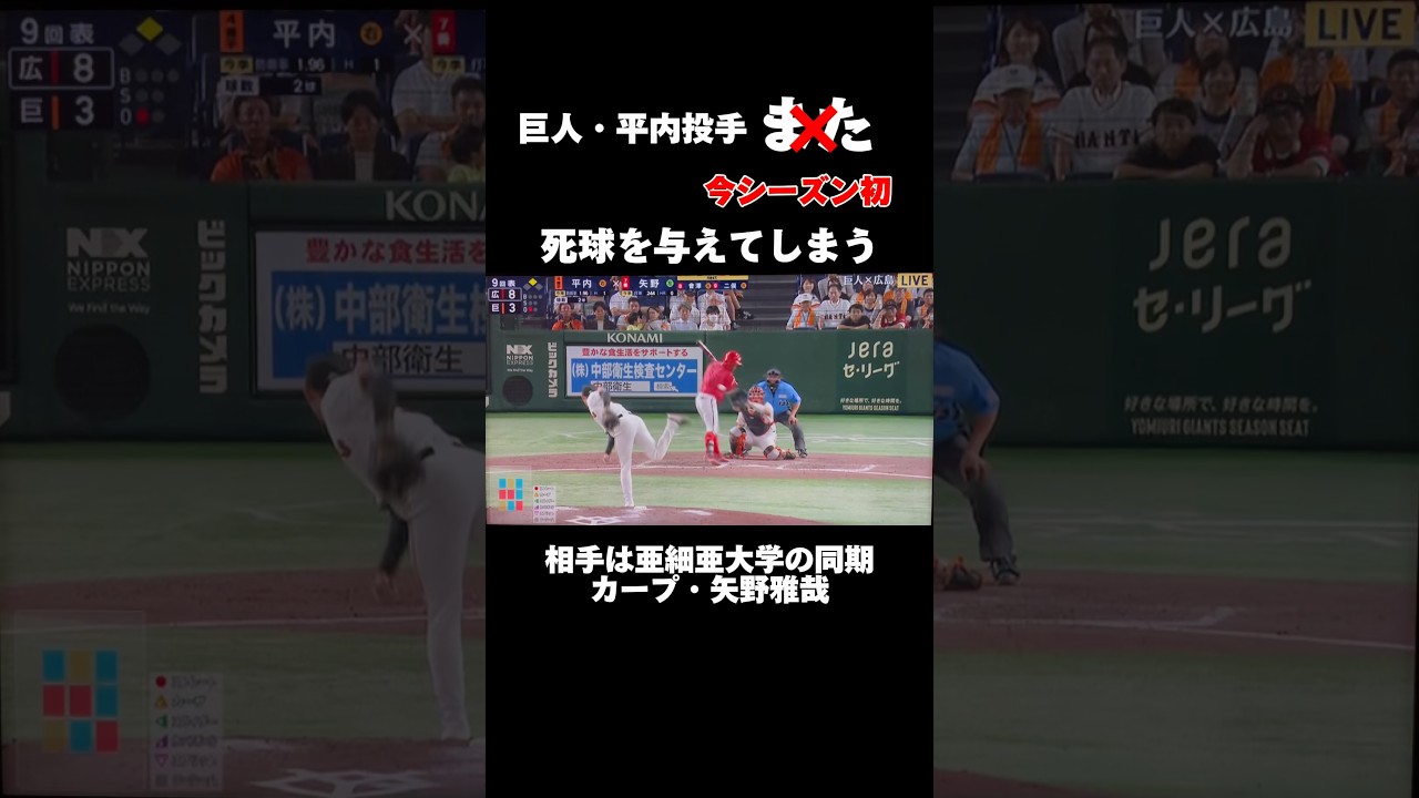 【巨人・平内投手】が今シーズン初死球を与えたシーンです