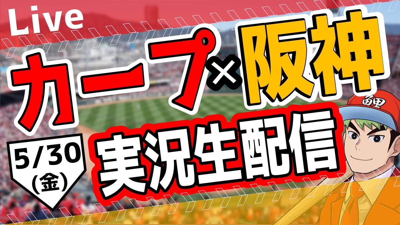# カープ ライブ 5/30(金) 広島東洋カープ対阪神タイガースを実況生配信でお送りします。得点シーンもアーカイブでハイライトをチャプターにします!