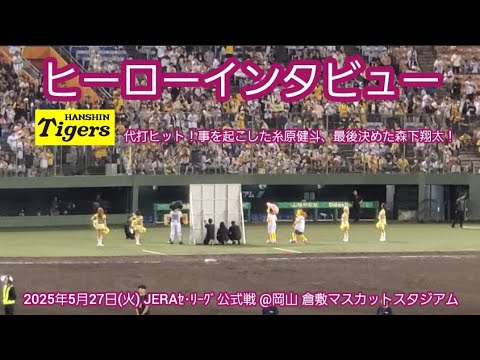 20250527【現地】糸原健斗、森下翔太のヒーローインタビュー 阪神タイガース サヨナラ勝ち@岡山 倉敷マスカットスタジアム・外野レフト