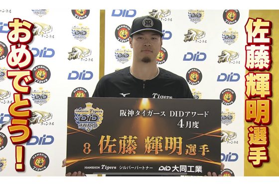 4月20日の広島戦、2本塁打を含む4安打6打点の活躍を見せたことが阪神ファンの支持を集め、4月度の「DID 大同工業 presents 阪神タイガース DIDアワード」に選ばれた佐藤輝明内野手が授賞式に臨み、「あの2本塁打は鮮明に覚えています」と喜びを語った。