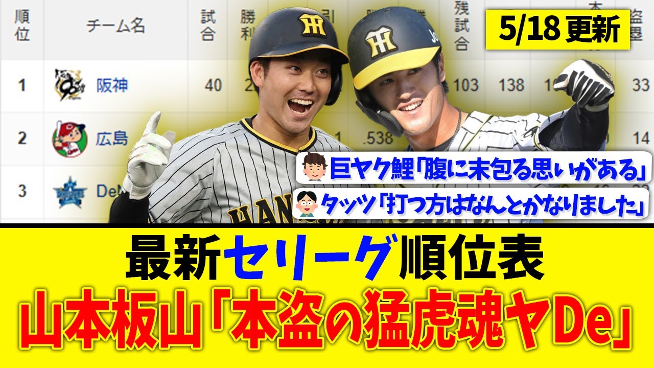 【5月18日】最新セリーグ順位表 ~山本板山「本盗の猛虎魂ヤDe」~