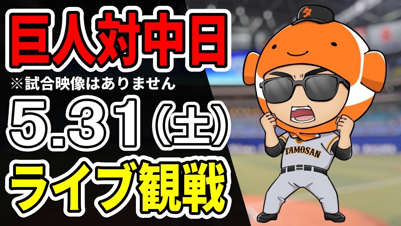 【巨人ライブ】5/31 巨人 対 中日ドラゴンズをみんなで応援するライブ!巨人戦を生配信中!! #読売ジャイアンツ #中日ライブ