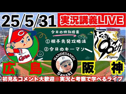 【阪神公式戦ライブ】5/31 広島vs阪神 実況講義ライブ @マツダスタジアム セリーグ公式戦 初見大歓迎 #阪神タイガース #阪神 #広島東洋カープ 25/5/31