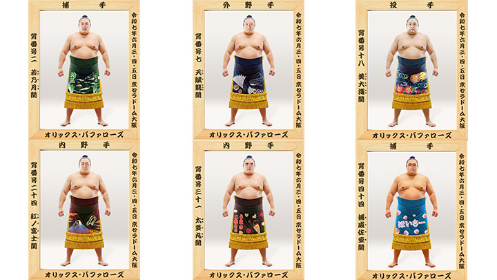 優勝額やのぼり旗も登場! オリックスが6月3日〜5日に「日本相撲協会」とのコラボ試合開催 パ・リーグ.com優勝額やのぼり旗も登場!6/3(火)~5(木)「日本相撲協会」コラボ試合開幕! オリックス・バファローズ【6/13(金)】正代関(熊本県出身)が来場!日本相撲協会コラボイベント情報 福岡ソフトバンクホークス「これのアクスタ欲しい」オリックスの選手が力士に転職?宮城大弥は美大海(ちゅらたいかい) 紅林弘太郎は紅ノ富士 日テレNEWS NNN【オリックス】日本相撲協会コラボ試合 10選手が力士姿に変身!?「美大海」に「紅ノ富士」は誰? nikkansports.com