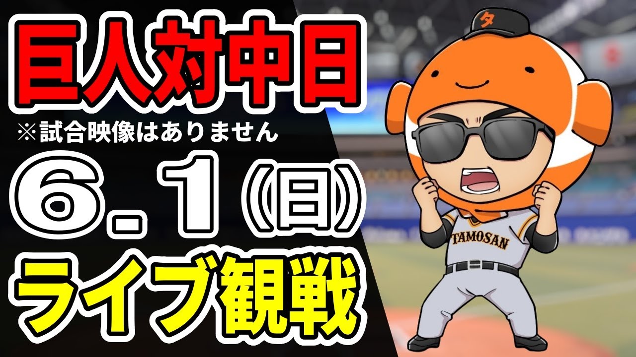 【巨人ライブ】6/1 巨人 対 中日ドラゴンズをみんなで応援するライブ!巨人戦を生配信中!! #読売ジャイアンツ #中日ライブ