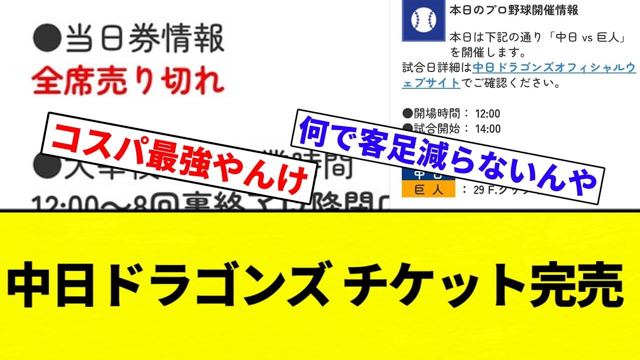【名古屋の人気球団】中日ドラゴンズ チケット完売【プロ野球反応集】【2chスレ】【なんG】