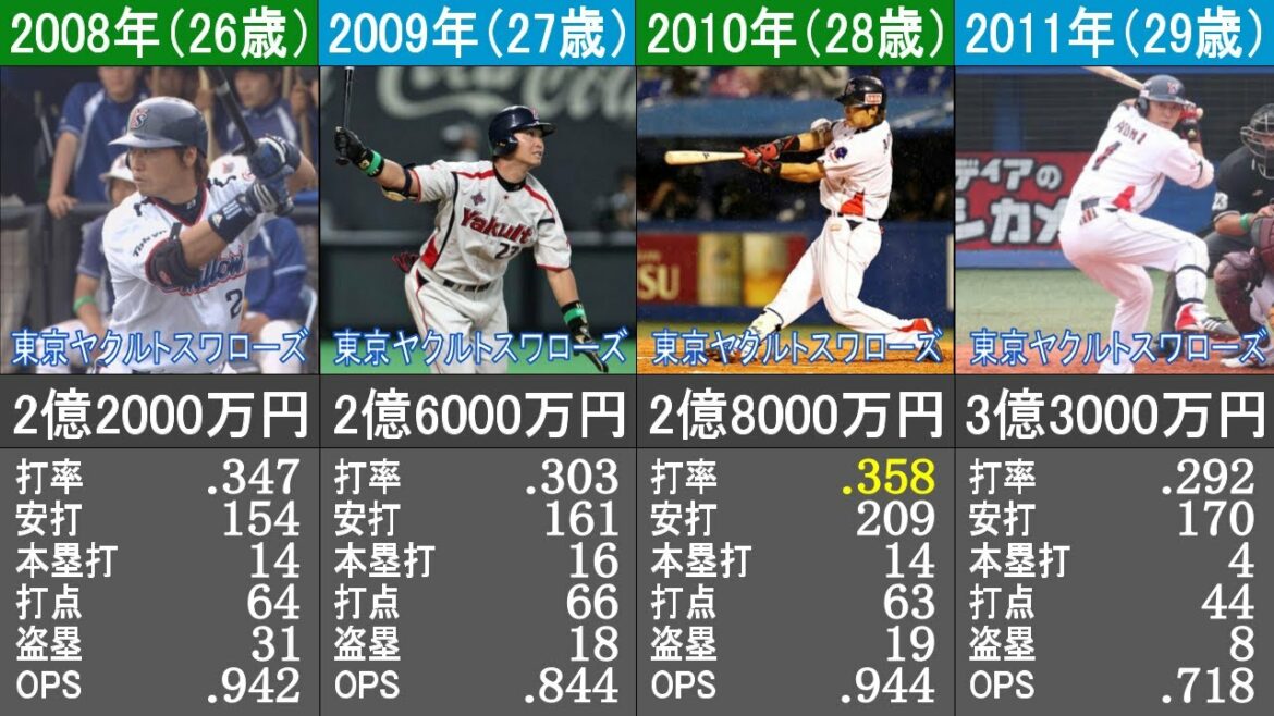 青木宣親選手の成績データは2020年度シーズン終了時点のものです。 成績データはWikipediaから引用しております。 年俸データはあくまで推定であることをご了承願います。 #プロ野球 #年俸推移 #成績データ 関連動画 イチローの年俸推移 https://youtu.be/rlGl07Dp3qU 田中将大の年俸推移 https://youtu.be/srz_FVkCM4c 日本プロ野球歴代最高記録の再生リスト プロ野球選手の年俸推移 #プロ野球Tokyo Yakult Swallowsまとめメジャーリーグ年俸成績打率東京ヤクルトスワローズ比較青木宣親 NPBHUB.COM | The Fanbase of Nippon Baseball & Nippon Professional Baseball