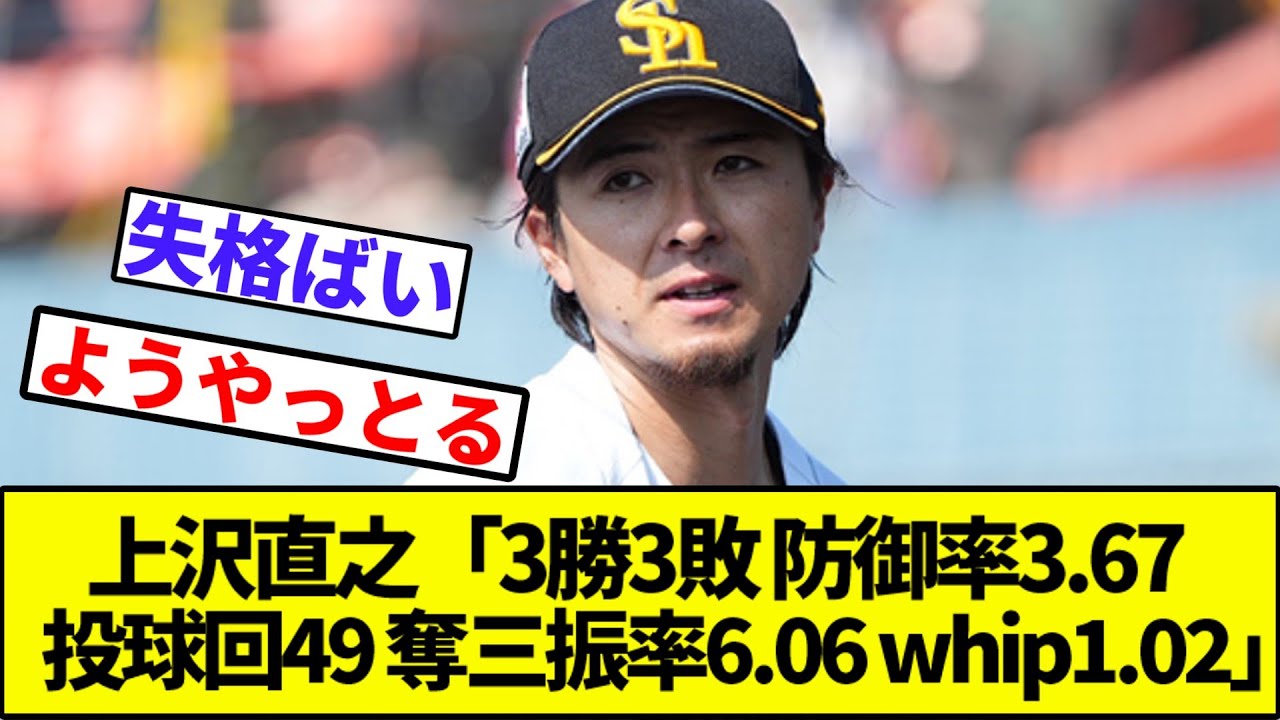 引用元:上沢直之「3勝3敗 防御率3.67 投球回49 奪三振率6.06 whip1.02」←これについての率直な感想wwwwww