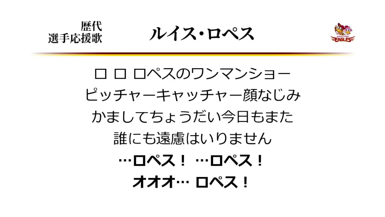 記念すべき楽天オリジナル個人応援歌第1号、ロペスの応援歌です。