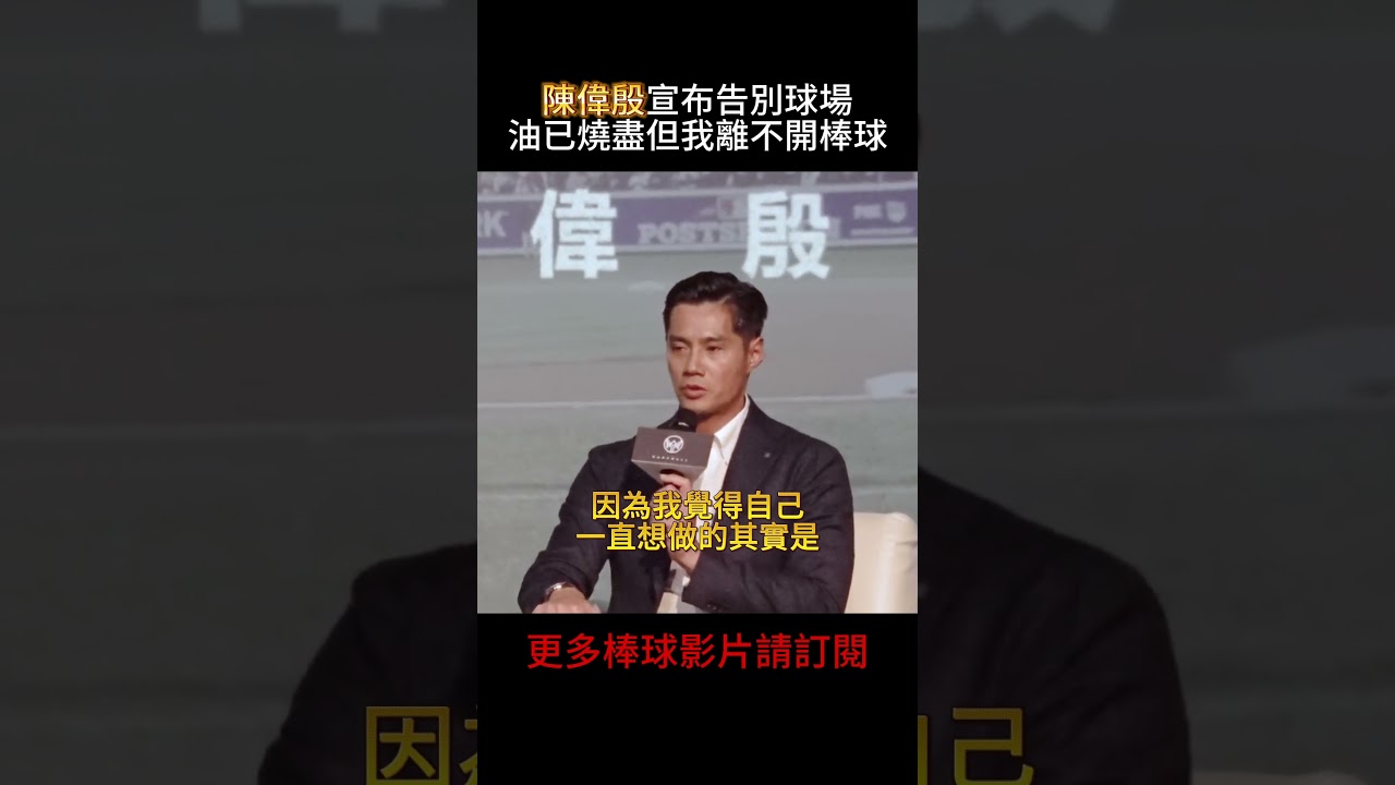 🥺 陳偉殷宣布告別球場:油已燒盡,但我離不開棒球⚾💔