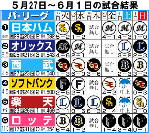 【パ今週の展望】苦戦ソフトバンク、予想外ロッテも交流戦は流れ変えるチャンス/平石洋介 – 評論家コラム – 野球コラム  nikkansports.com【ロッテ】先週のMVP&今週の展望 交流戦強い角中勝也キーマン(日刊スポーツ)  Yahoo!ニュース【パ今週の展望】節目の交流戦まで1週間 借金抱えるチームは1つでも減らして迎えたい(日刊スポーツ)  Yahoo!ニュース【パ今週の展望】苦戦ソフトバンク、予想外ロッテも交流戦は流れ変えるチャンス/平石洋介  nikkansports.com【ロッテ】先週のMVP&今週の展望 交流戦強い角中勝也キーマン  goo ニュース