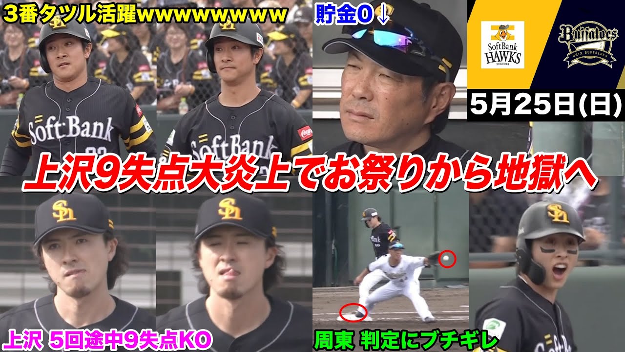今日のタツル、上沢、9失点でド派手に逝く。周東も誤審に激怒…そして悪夢は続き13失点…楽しかったお祭りが一瞬で絶望の地獄と化した、あまりにも酷すぎる逆転負け劇場WWWWWWWWWWW
