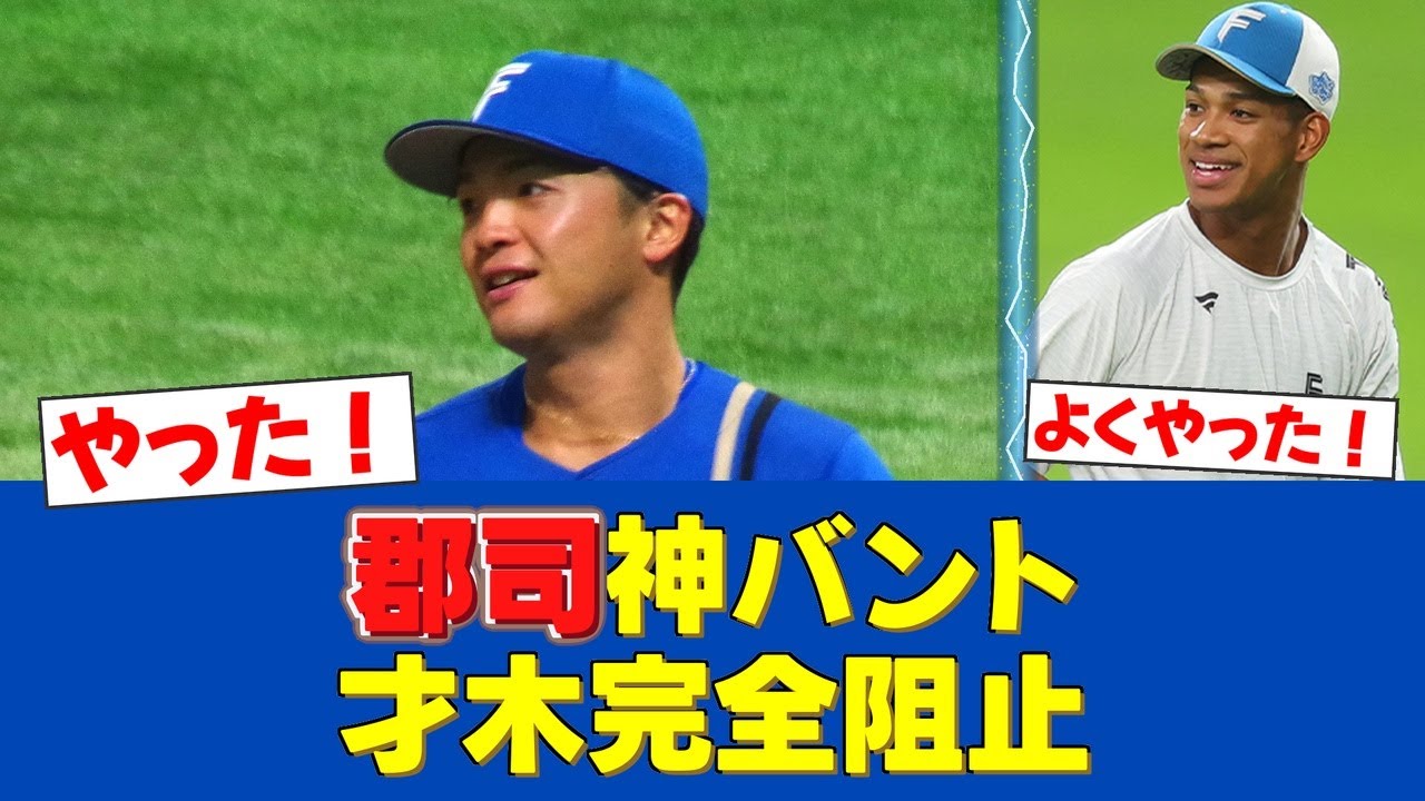 【神技】郡司裕也、執念のセーフティーバントで才木の完全投球を止めた!【日ハムファンの反応】【F速報】