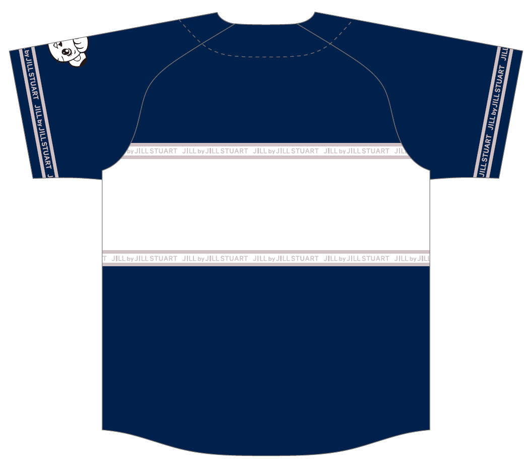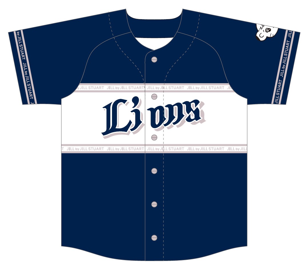 両者で制作した「JILL by JILL STUARTコラボユニフォーム」には、ライオンズのチームカラーのレジェンドブルーに、JILL by JILL STUARTのメインカラーである淡いピンクのラインやシャドウなどが所々にあしらわれています。袖部分には公式マスコットのライナのイラストも入り、特別なコラボレーションを演出しています。ボトムスを選ばずに、カジュアルにもフェミニンにも着こなすことができるかわいいユニフォームです。なお、袖にライナがプリントされたユニフォームは初めてです。