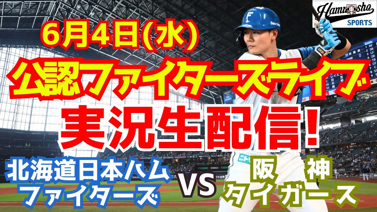 日ハム 日本ハムファイターズ 2025年6月4日 北海道日本ハムファイターズ対阪神タイガース戦を実況生配信でお送りします。