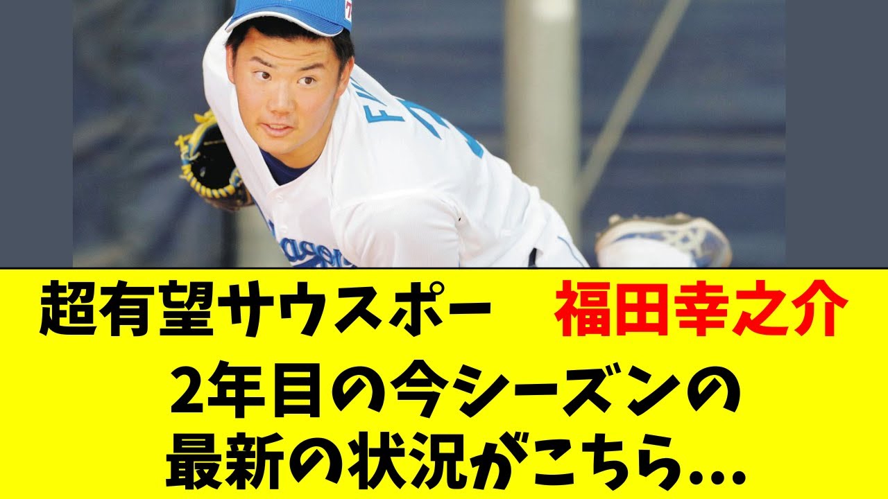 昨年は高卒ルーキーとして超有望 サウスポーと注目された福田孝之助投手2 年目の今シーズンの最新の状況を見ていき たいと思います 。2023年に理車高校からドラフト4位 で指名された左のピッチャーです。 181cm85kmと長心で対格も良く 最速151kmの直球が魅力とような そんな高校自体の投球でした。ただですね 、コントロールに課題がありまして、高校 時代は絶対的なエースということではなく 、ま、基本的には背番号10番とかいう 感じで背番号を1桁は別のピッチャーが 背負うということが多かったです。ただ やはり対格もいいですし、ドラフト4位で 指名されてプロ初登板2軍戦で投げた時に はいきなり150kmを連発してかなりの 話題になりました。そして1年目にすでに 事故最速の152kmを計測しています。 年1年目2軍では10試合の登板で防御率 が3.13、2勝参敗37.1イニング、 フォアボール25個、脱三振が29個と いう成績になっています。一軍は先発 ピッチャーが不足している状況でありまし て、ネオ投手であったり、中投手であっ たり、こうした若いピッチャーの対当って いうのも少ないですから、この福田投手に 最も大きなこう期待がかかっているという のが、ま、昨シーズンの2軍の状況でした 。そんな福田投手今年2年目のシーズンに 入っているわけなんですけれども、現在値 について詳しく見ていきたいと思います 。2年目の現在ですけれども、今年はです ね、平均2イニングから3イニングぐらい でロングリリーフとして登板することが 多くなっています。先発として7イニング とか、ま、そういった感じで投げていくの はまだまだ先になるかなという感じです。 ただ今年はですね、コントロールの課題 っていうのが元々プロ入り前からこを言わ れていて、昨ーズも結構フォアボール多め だったんですけれども、そのコントロール の課題っていうのがさらに露呈している 感じで、フォアボールがイニングと同じ ぐらいの数値出てしまっていて、ランナー を貯めるというケースが非常に多くなって います。ここまで7試合で防御率こそ 3.14ですけれども、14.1イニング 投げてフォアボールが15個とイニングを 上回っていて、脱三振9個、左塚2割2部 、そして1イニングあたりのランナーが 1.81と非常にランナー多く出して しまっています。そして少し気になるのが 平均休速も昨シーズンは144.いくつと いうぐらいの数値だったんですけれども、 今年は142kmほどまで低下していて、 大体平均休速が2kmぐらい落ちています 。そして空振り率で見ても20%ほどあっ たところから12%ぐらいまで落ちている ので、ま、ちょっと空振りを取れなくなっ ているというところも懸念点ではあります 。ま、そんなに2軍でも登板していないの で、ま、どちらかというと、こう フォーム固めなんかをしながら今年はこう 2軍でこう調整していってというような 育成のシーズンになりそうです。なので1 軍デビューにはもう少し時間がかかるかな という感じで長い目で見たこの福田選手の 成長を期待したいと思います。是非 チャンネル登録、グッドボタンお願いし ます。ご視聴ありがとうございました。