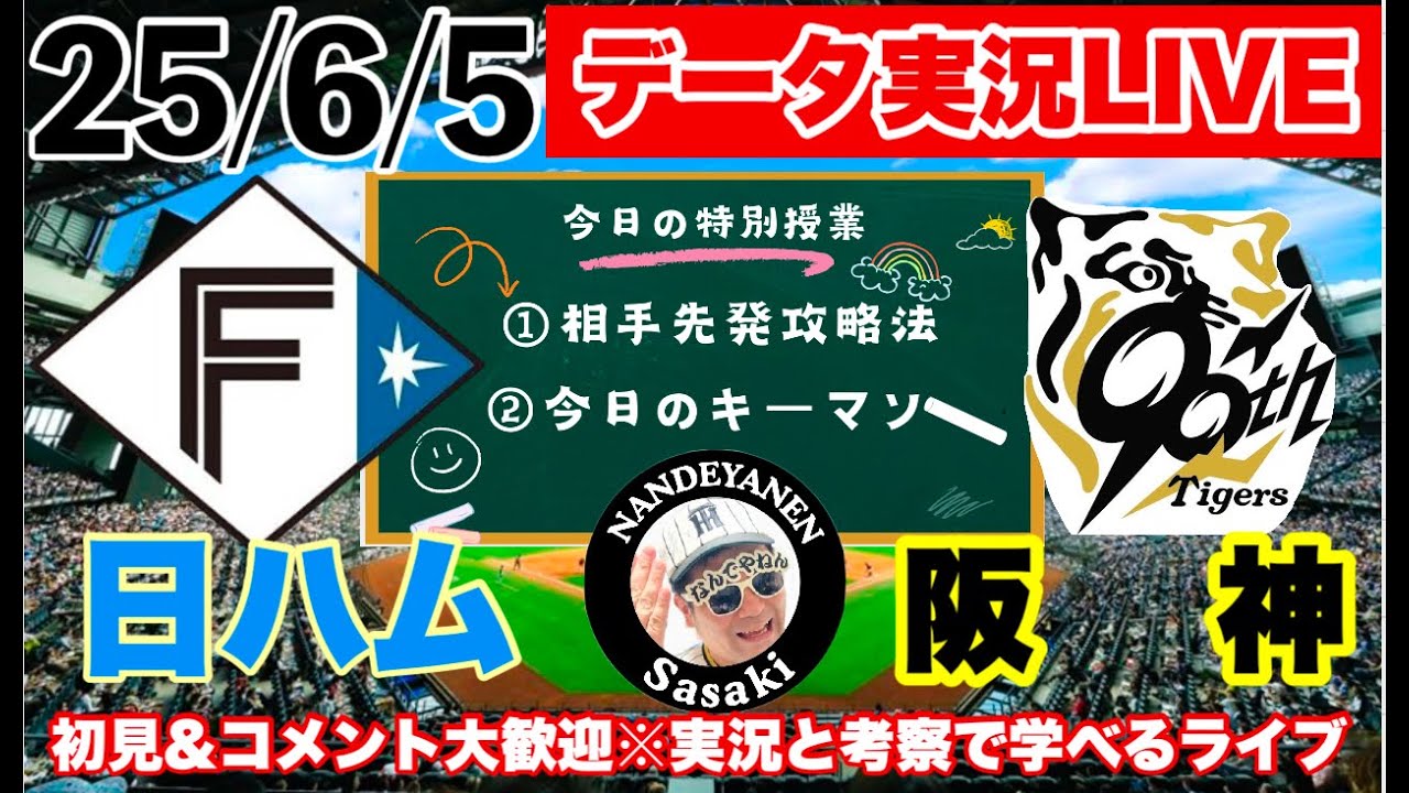セパ交流戦【阪神公式戦ライブ】6/5 日ハムvs阪神 データ実況ライブ @エスコンフィールド北海道 #初見大歓迎 #阪神タイガース #阪神 #北海道日本ハムファイターズ 25/6/5