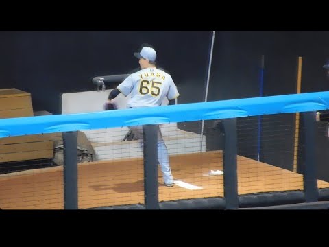 【登板に備えて】急ピッチでブルペン投球をする湯浅京己