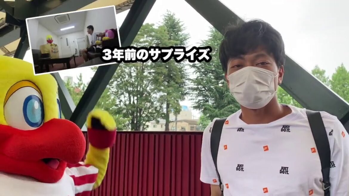 スイッチくんが球場入りを待ち構えてお祝いしました!