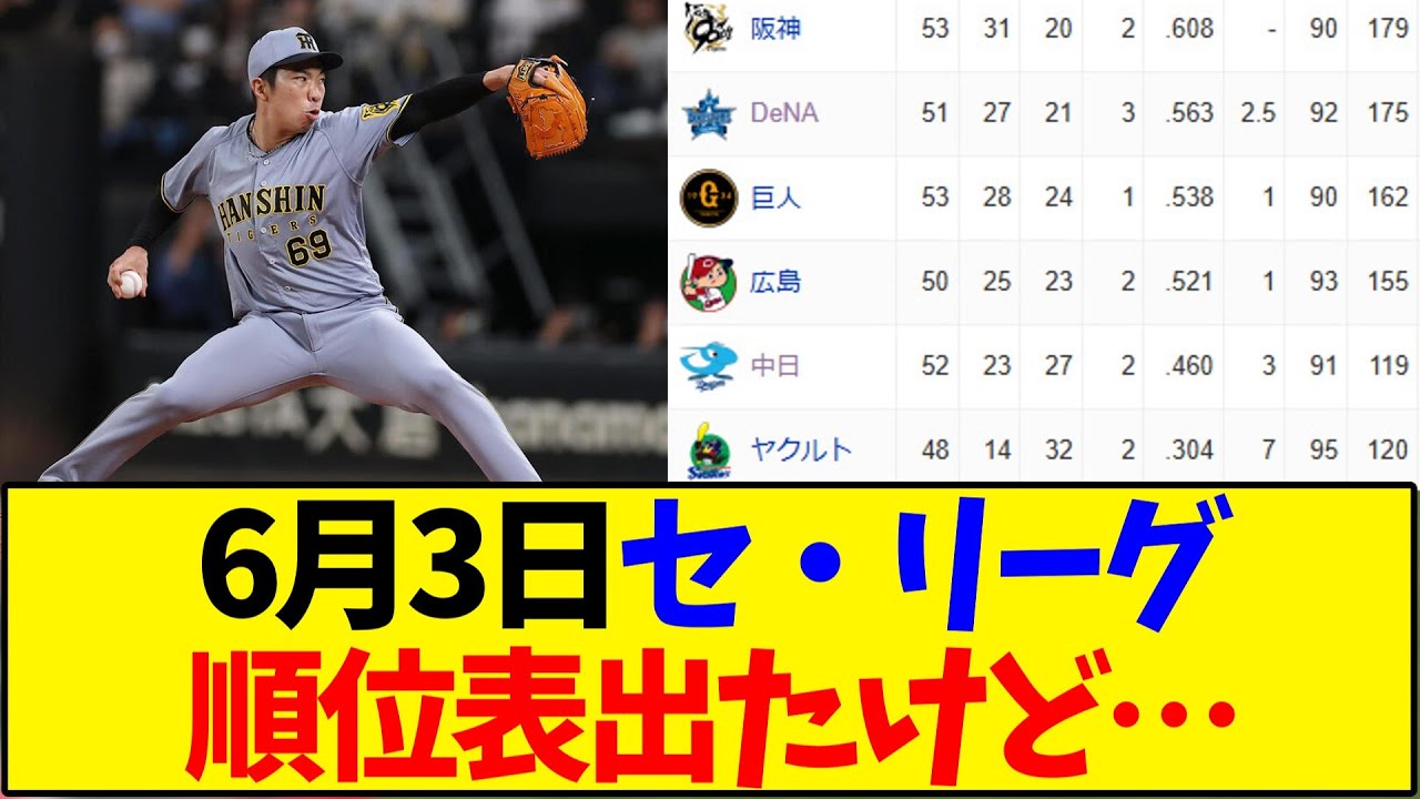 【最新版】6月3日セ・リーグ順位表出たけど…【野球反応集】