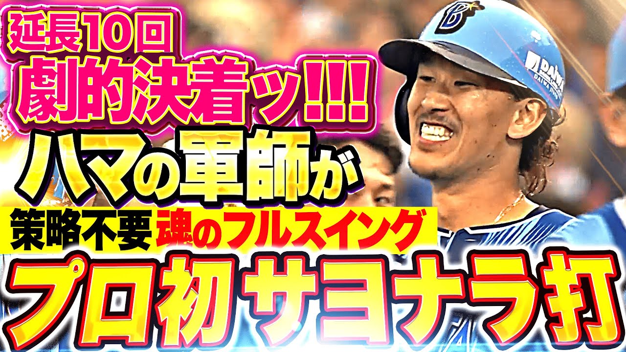 1点ビハインドの9回に追いついた横浜DeNA。10回には先頭の京田陽太がレフト線へのしぶといツーベースで出塁。その後1死満塁とすると、今季から”ハマの軍師”としてセ界を掻き回している三森大貴がプロ初となるサヨナラ打!! セ・リーグでもここぞという場面で良い仕事をし、多くのベイスターズファンに愛されています!!