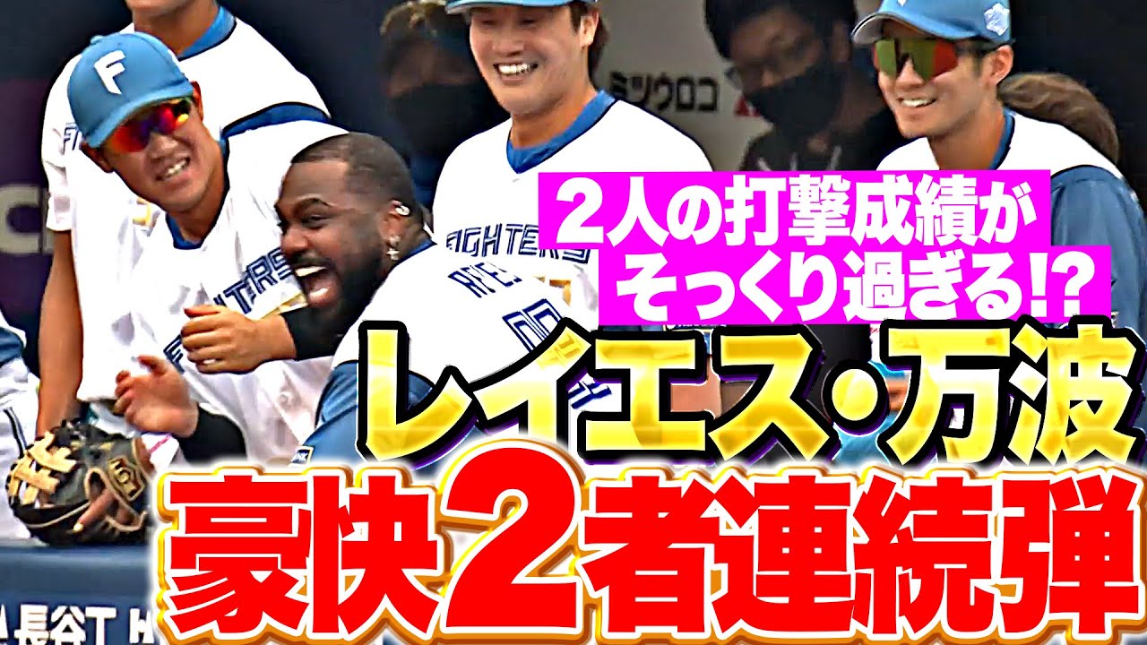 北海道日本ハムは1点を追う5回、レイエスが左中間へ12号同点ソロホームランを放つと、続く万波中正も12号ソロホームランを放ち、勝ち越しに成功!! この連続アーチが決まった時点で、両者ともに12本塁打29打点。安打数も近く、仲良しコンビは打撃成績まで仲良し!!