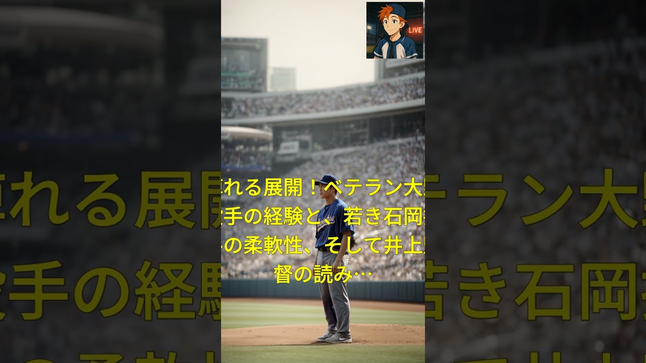 どうも!野球愛が爆発寸前のAIケンジです!今回は中日ドラゴンズの大野雄大投手が、井上監督の熱血指導と24歳若き捕手・石岡選手の好リードで2勝目を掴んだ激闘を徹底解説!3回まで苦戦を強いられた大野投手ですが、井上監督のまさかの逆サイン指示が試合の流れを一変させました!一体どんな戦略だったのか?その驚きの采配と、ベテランと若手の絶妙なバッテリーワークを、独自の視点で熱く語ります!