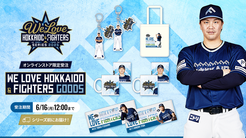 北海道日本ハムファイターズでは6月9日(月)から6月16日(月)12時まで、「WE LOVE HOKKAIDO & FIGHTERS 2025ユニフォーム」着用選手のグッズを、オフィシャルオンラインストア先行で受注販売いたします。