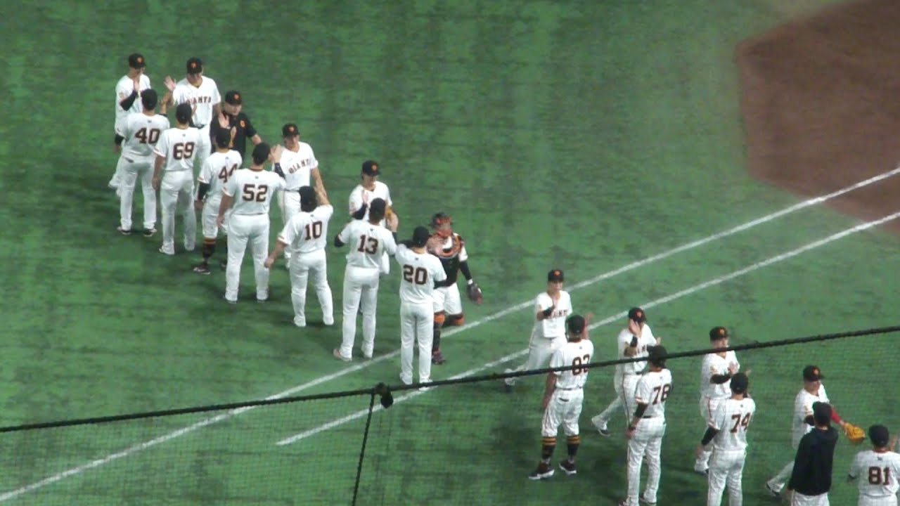 9回表2アウトで、田中瑛斗が村林一輝をサードゴロに打ち取り試合終了。先発・戸郷翔征は7回3安打無失点の好投で今季2勝目。