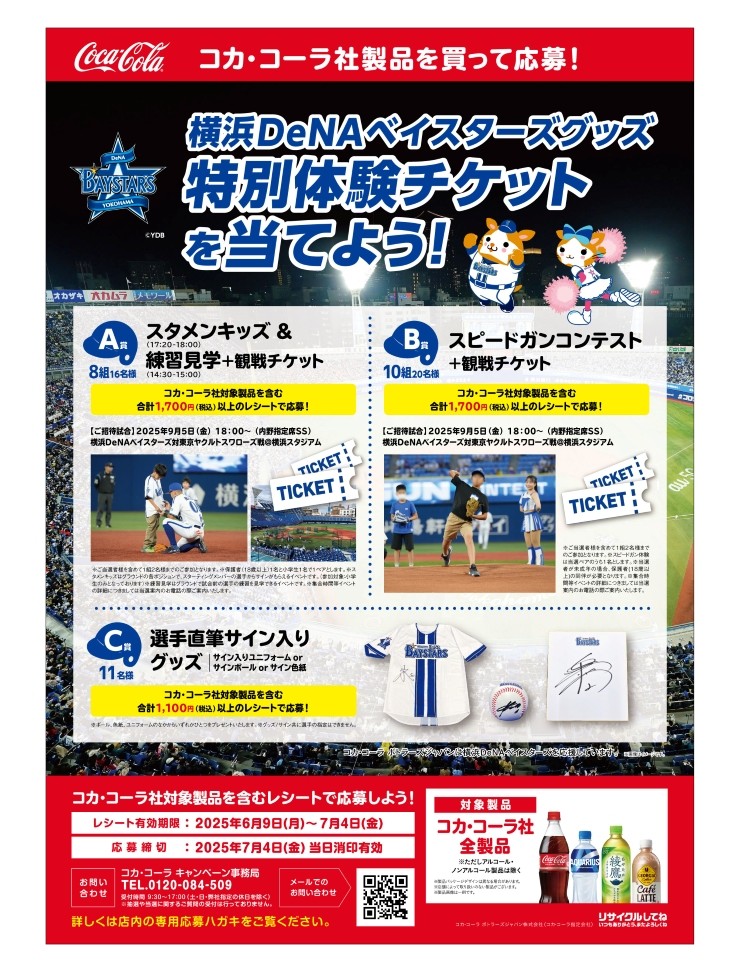 6月9日(月)から神奈川県内を中心とするスーパーマーケットで「コカ・コーラ社製品を買って応募!DeNAベイスターズグッズ/特別体験チケットを当てよう!」プロモーションがスタートします。