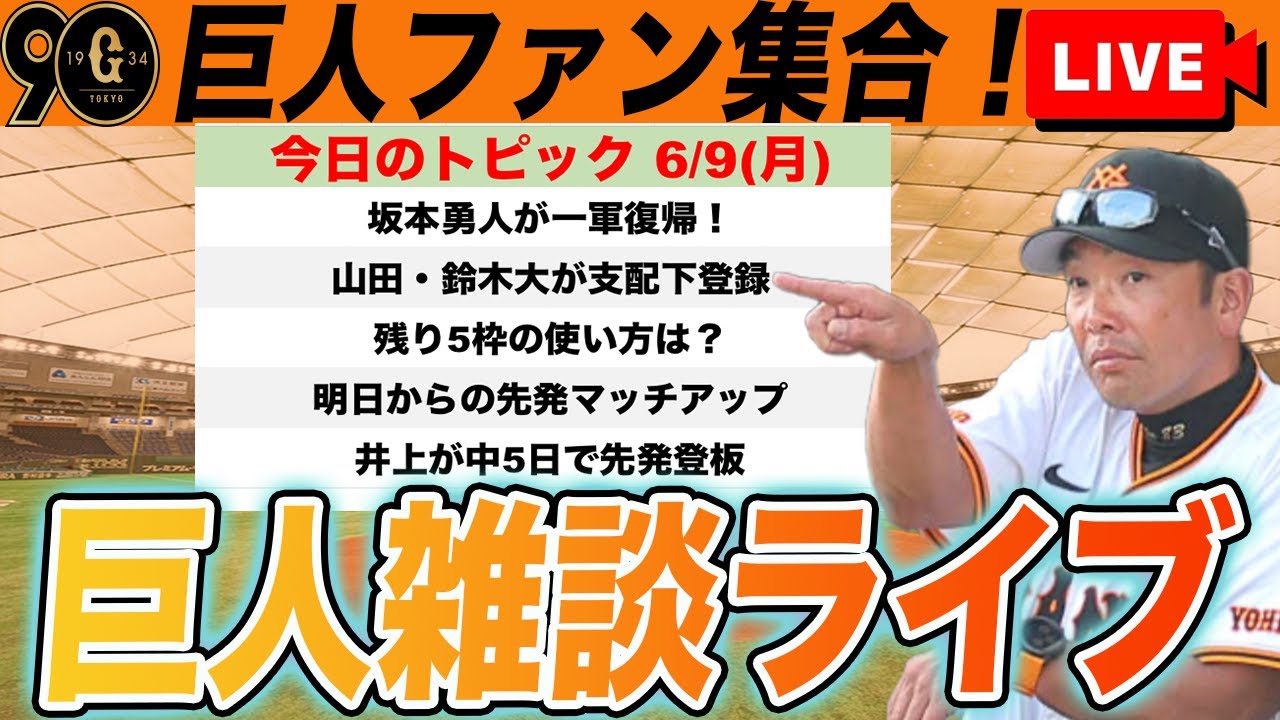 【巨人ファン集合】山田・鈴木大支配下登録で残り枠は5!残り枠の使い方考察や明日からのソフトバンク戦に向けてなど雑談 読売ジャイアンツ