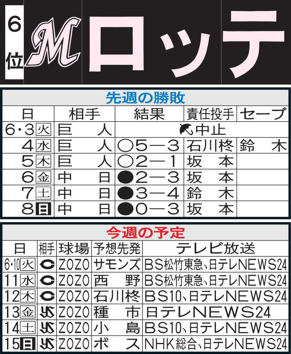 【ロッテ】先週のMVP&今週の展望 習志野吹奏楽部にOB池田来翔が発奮(日刊スポーツ) – Yahoo!ニュース  Yahoo!ニュース【ロッテ・サブローヘッドコーチ】1軍に配置転換 テコ入れ「いっぱいある」方針語る  nikkansports.comロッテ 2軍監督から配置転換のサブローヘッド合流「結果で勝負してもらいたい」  スポニチ Sponichi Annexリーグ最下位ロッテ、コーチ陣「配置転換」で何が変わる?識者分析「このままいけば責任問題に」「ファンも黙っていない」  au Webポータルロッテ サブローヘッドコーチが合流「外国人に頼らない打線を目指してやっていきたい」2軍監督から配置転換  デイリースポーツ