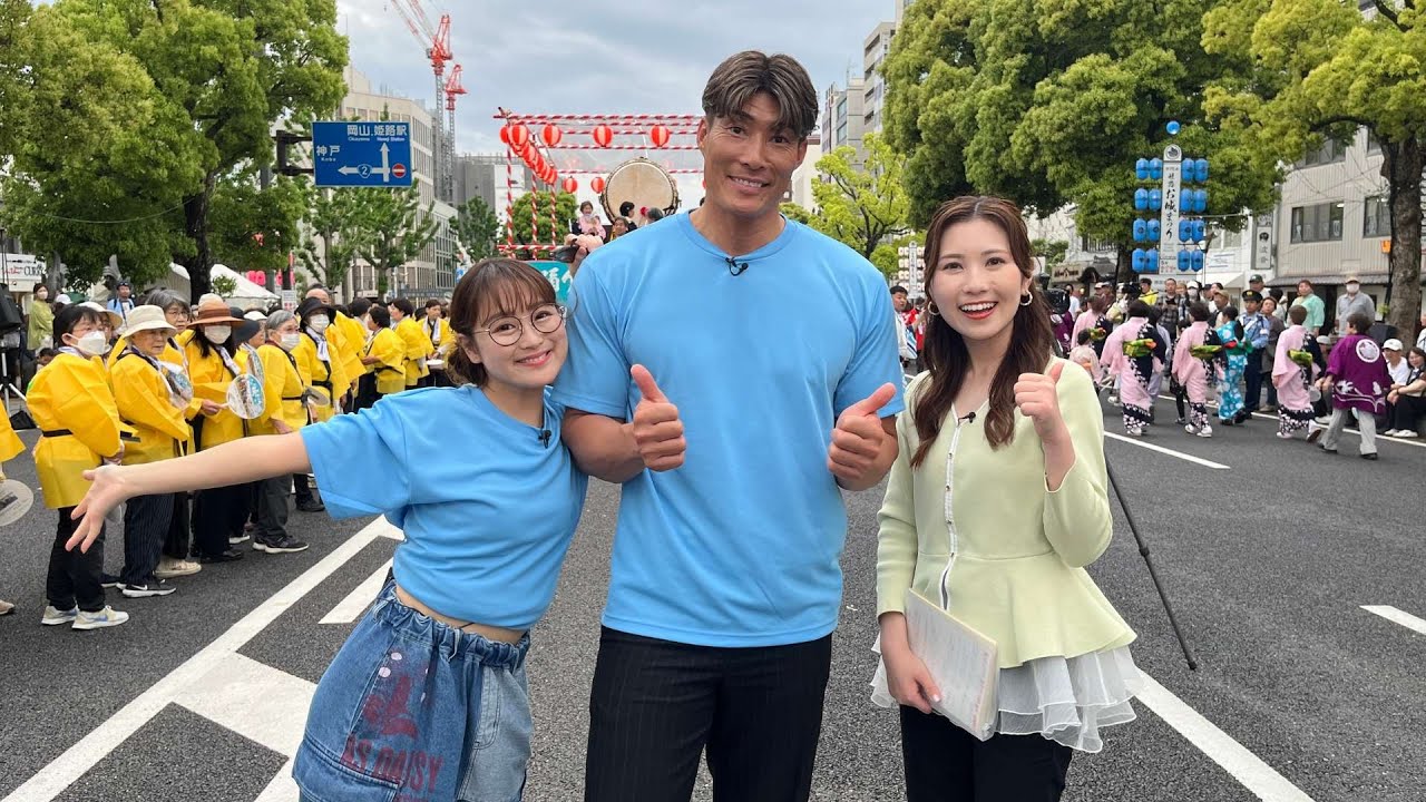 いやでも本当に今日雨だったんですよもう午前中はどしゃぶりの方だったのに気予報見てて今日ちょっとやばいなって思ってました ですよねでも僕晴れ男なんで いや良かった本当もうありがとうございます私も晴れ女なんです やったそしてそして雨女です じゃなんか私 姫路にこう降り立った時に すごい懐かしい感じがしたんですよあれ私 2回目だっけて思ったんですよ 初めてでした僕3週連続姫路です ええ嘘あすごい すごい迫力やっぱり 迫力すごいですねねそうなんですよ 姫路お城祭りの季節がやってまいりました やったイエーイ すごいすごいすごいもう盛り上がりがすごい いや改めまして心強いゲストのお二方ご紹介してまいります オリックスや阪神などでプレイされ 2013年のWBCで侍ジャパンの4 番打者を任されされた 超人こと糸井さんです よろしくお願いします ね 今日はもう姫路城よりも姫路事情やからねこれ はいそしてはい バラエティ女王の異名を持つ鈴木七さんです お願いしますお願いしますお願いします よろしくお願いします あそして今日大名行列には伊藤さんが参加される [音楽] 殿様役です ちょっと歩かしていただくんですけど ねやっぱりこう野球で鍛えたこの ね体をこう強い人殿の様で歩きたいなと思います うん見守ってます強く歩きたいと 楽しみ楽しみあのすごい私見守ってますそうですねそしてお 2 人にはまロケが終わる頃にはま姫路のスペシャリストになってもらおうかなとなりたい はいなりたいなと思ってクイズをご用意しておりますのでぜひ 絶対わかんないですもん大丈夫です ちょっと有利ですよね さんの方がねま僕結構来てるんでには 自信あります頑張ってください 自信ありますそれでは第75回姫路城祭り 白の城に未来の風始まります 始まります [音楽] [音楽] ສ [音楽] [音楽] こちら大手前公園のステージでは現在新た に就任する姫路お城のアンバサダーの4人 の引き継ぎ式が行われています 続いて山下佑きさんです 全姫路お代のアンバサダーに今一度盛大な 拍手をお願いいたします私たちが初代を 務めた姫路お城のアンバサダーがこの先 10年20年30年と続き姫路の観光大使 として皆さんに愛され続ける存在になれる よう心からお祈りしています今日でこの 制服脱ぎますでも心はずっとアンバサダー のままですこれからは自分の Instagram やあと仕事先などでこの大好きなのことをたくさん PR し情報発信頑張っていきたいなと思っていますたきが引き継がれます 頑張ってください 姫路を訪れた方にもまた慣れしたしんだ方にもこんな姫路もあったんだと驚きと発見を提供できるよう尽力いたします 男性初のお城のアンバサダーとして新たな道を切り開いてまいりますのでどうぞ 1年間よろしくお願いいたします さんである姫路城はもちろん姫路のえとこ美味しいもんそしてたくさんの魅力を皆様にお伝えできるよう頑張ってまいりますのでどうぞよろしくお願いいたします 持ち前の明るさと学生ならではの視点でたくさんの方々になるしていきたいと考えていますどうぞ 1年間よろしくお願いいたします 感情の皆様どうぞ新アンバサダーの皆様へ今一度温かい拍手をお送りください [拍手] この後はパレードのトップを飾って今年 から新たに姫路お城のアンバサダーになら れた皆さんが姫路市消防音楽隊と一緒に スタートゲートを出発されパレードが 始まります [拍手] 第75 回姫路祭りスタートどうぞ [拍手] キャッスルパレードのトップを飾るのは 姫路市消防隊と姫路お城のアンバサダーの 皆さんです 今年新たに姫路お城のアンバサダーに就任 されたのは稲シさん藤原ゆ太郎さん山下佑 さん山田誠さんの4人です 11 回目の参加となる姫路初動キッズの皆さん今回はタッチフレーズ白ぎの城に未来の風スカルを希望されます [音楽] [拍手] [音楽] [拍手] 今年で24 [音楽] 回目の開催となる姫祭りは5月18 日に開催され40チームおよそ1000 人の踊り子が姫路の町を盛り上げます 小林寺憲法連合は姫路市を中心に北神崎町西達市で活動する団体です わざと社会教育を終練の体系にし信念を持って行動できる人を育てることを目指しています 今年で決成44 周年を迎える鳥取市観光協会連今回も第 24 代鳥取んシャン鈴大使を含めたメンバーで笠踊りを披そして鳥取市観光協会連に続くのは岩龍優先の皆さんです [音楽] ティラノサウルスの着ぐるみを着て走るアメリカ発症のユニークな競技姫路では芝フ広場で年 2回開催されています [音楽] 姫路お城祭り [音楽] 姫路の町ははい まこれから散索される予定はありますか?ナさんは え姫路の町うんプライベート プライベートでプライベートで えなんか恋人ができたらデートしたい あ姫路姫 だって結構だってカップル結構多いんですよ 多いすね確かに多いすね すごく多くてなんか羨ましいなって 伊さんなおしました ここからはですね一緒にはい お城を探索していきましょう やった行きましょう 結構登ってきましたけれどもね登りましたね はい坂と