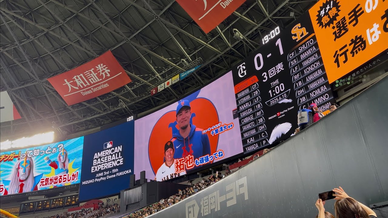 MLBコラボシリーズ▶︎福岡ソフトバンクホークスVS東京読売ジャイアンツ▶︎両チームからMLBの舞台に羽ばたいた選手からの応援メッセージ▶︎千賀滉大、菅野智之