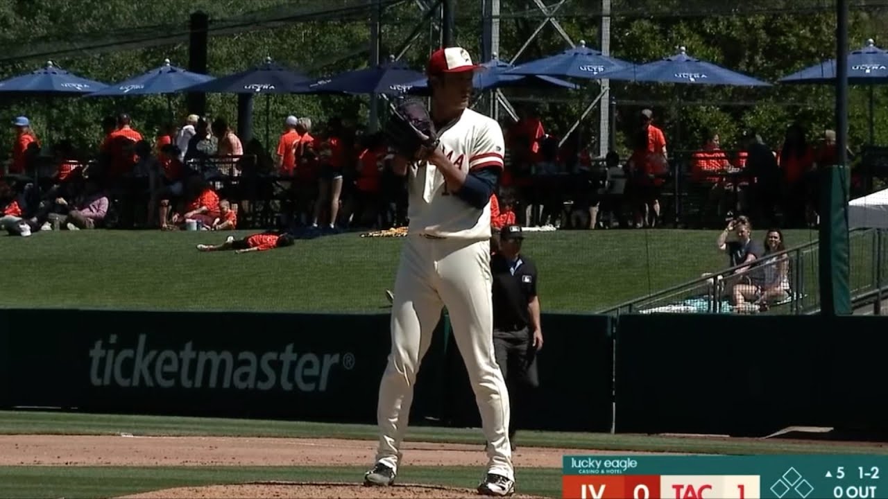 allowed an earned run since May 15th at Albuquerque the 1-1 fouled away both coming in that last appearance against Las Vegas the one-two miss went two fast balls then two sweepers here’s the two- two pitch goes upstairs with the 22 out of Oregon the payoff pitch popped up right side of the diamond in shallow right field taylor going out thomas calling for it and the right fielder slides made that made that catch the other day base is empty one gone for Shane McGuire fujianami kicks and deals outside at the career two hits in his first six at bats although he’s 0 for one today the two and a Washington native up getting his first AAA action this week 2-1 sweepers in the three and one here’s the pitch that’s outside ball four and Fujian walks right on left first pitch and played two with Midland and now five here with Las Vegas as the pitch grounded foul between the bag set at the shoulders he slides home on the 1-1 pitch and it’s lifted in the air towards center field a couple steps to his right reaches up to make the catch two away as Meguire going to be a tough pill to swallow right away as the first pitch to him down and in they’ve got to switch to the rival the one pitch that’s off the plate Nick who grew up said he couldn’t stand the Cardinals two ho pitches right on left matchup fujenami comes home and misses down near the ankles 30th 3-1 pitch that pitch looked pretty good from up here and it was that was a strike on the outside corner a very wellplaced sweeper by Fujinami hunt wins the challenge and the Fujian with a high set here’s the payoff and it’s fouled at the plate another 3-2 pitch that’s upstairs ball four two out two on and two out for Ernes here’s the first pitch and he lands the ball the 01 pitch swinging a miss going to no balls and two strikes on Ernes the pitch inside one in the fifth the one-two pitch to Hern he struck him out went to a cutter in the dirt hunt will lob the ball down to first locker steps in the bag and the [Music] [Music]