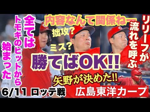 【広島東洋カープ】6/11 ロッテ戦 延長12回、矢野が決めた!! 拙攻が続きミスもあった中、ドロー濃厚の空気を変えたのはリリーフ陣でした 【矢野雅哉】【栗林良吏】【島内颯太郎】【新井貴浩】【カープ】