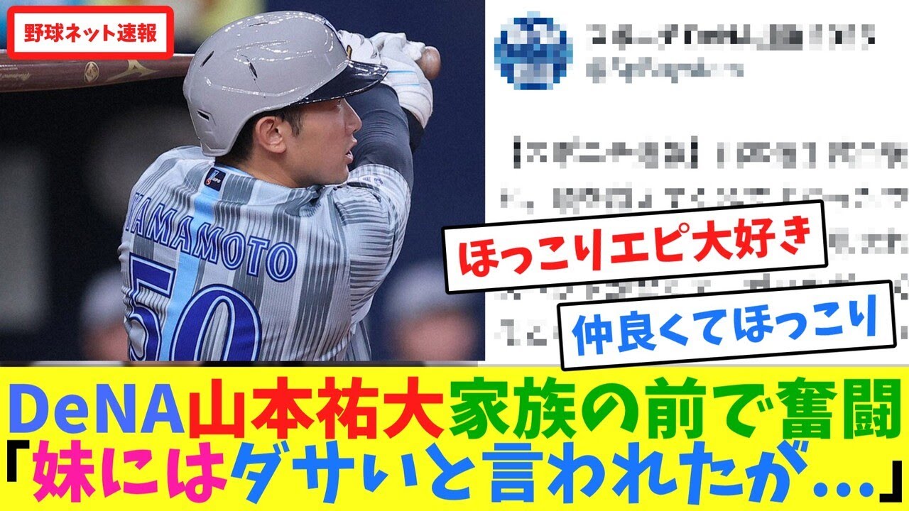 DeNA山本祐大、家族の前で奮闘「妹にはダサいと言われたが…」【ネット反応集】