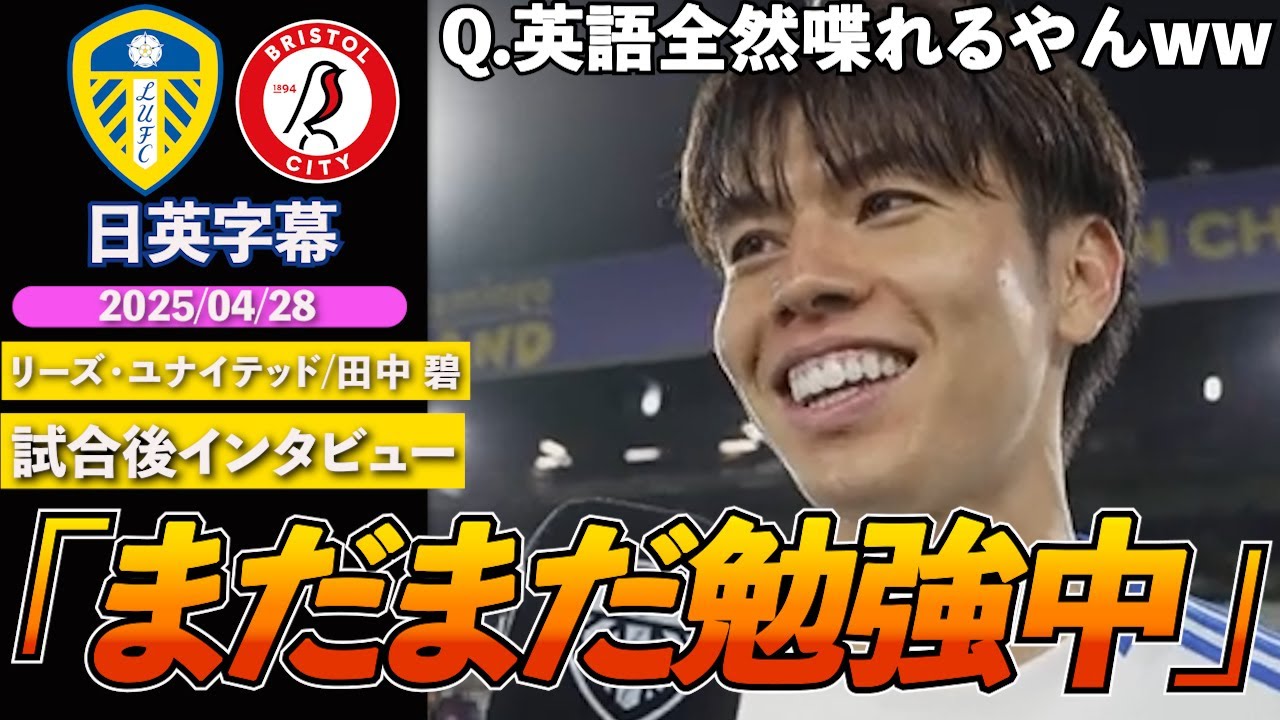 【英語インタビュー】リーズ田中碧、今季5点目!インタビュアーは英語力に驚き「喋れんと思ってたけど素晴らしいww」|リーズ VS ブリストル|田中碧 試合後インタビュー|日英字幕|2025年4月28日